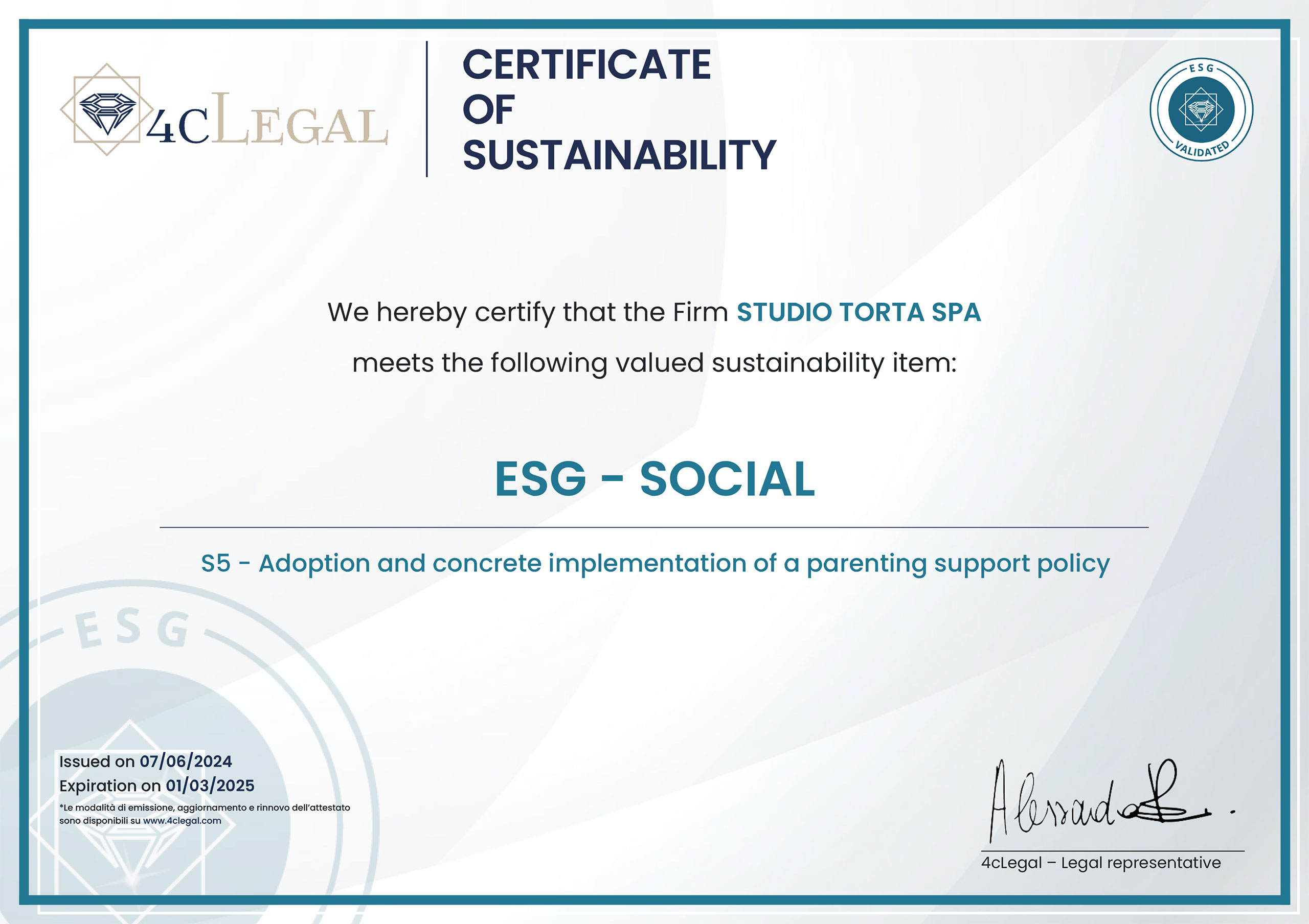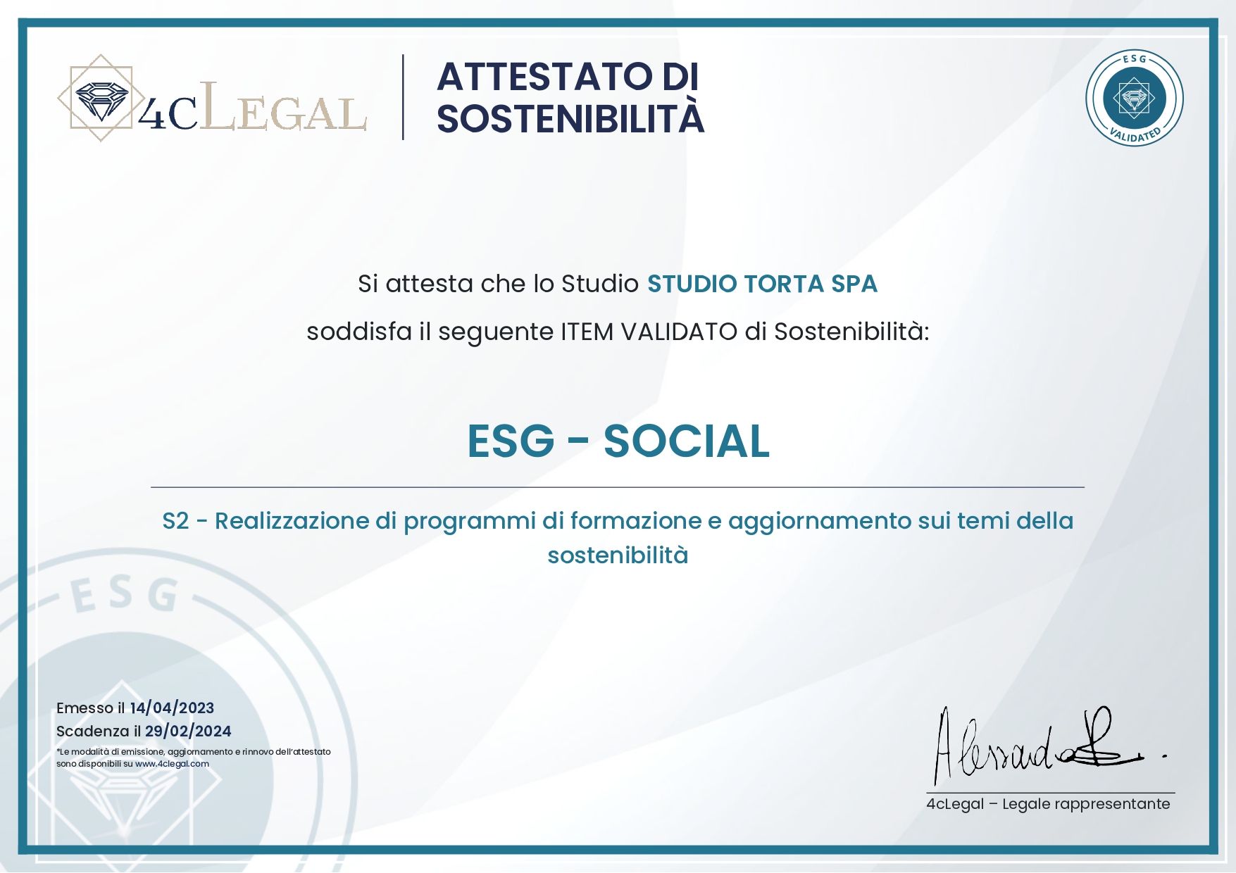 Studio Torta has among its values those of innovation, support for research and commitment to others. The Firm confirmed [...]