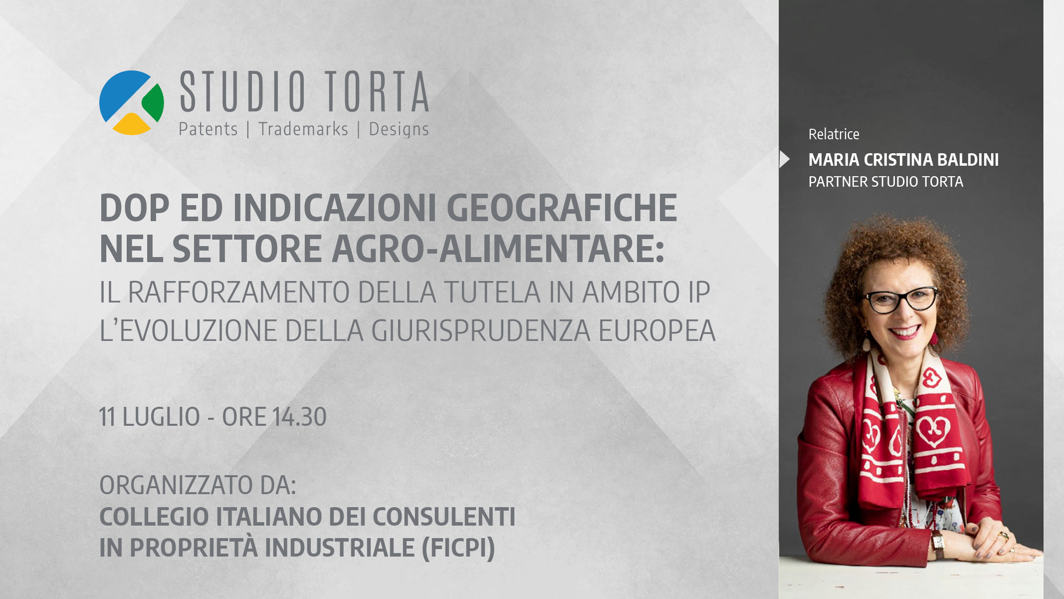 Giovedì 11 luglio, si terrà il webinar “DOP ed Indicazioni geografiche nel settore agro-alimentare: il rafforzamento della tutela in ambito IP – L’evoluzione della giurisprudenza europea” organizzato dal Collegio Italiano dei Consulenti in Proprietà Industriale.
